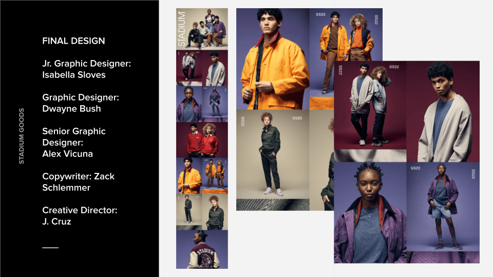 As the Creative Director at Stadium Goods, I established branding, campaigns, and visual standards for digital and print. I joined at start-up and grew the creative team to six. I built a cohesive brand identity, directed limited edition release campaigns, and managed partnerships at events.
