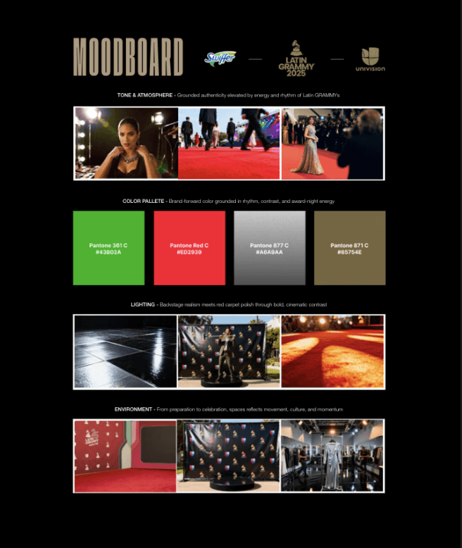 COLOR PALLETE - Brand-forward color grounded in rhythm, contrast, and award-night energy
