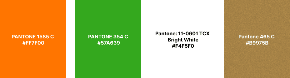COLOR PALLETE - Vibrant green and orange balanced with crisp white and warm metallic accents