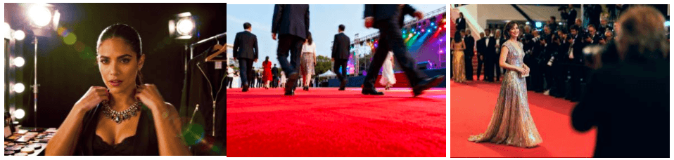 LIGHTING - Bright bold, high-contrast studio lighting and red-carpet energy